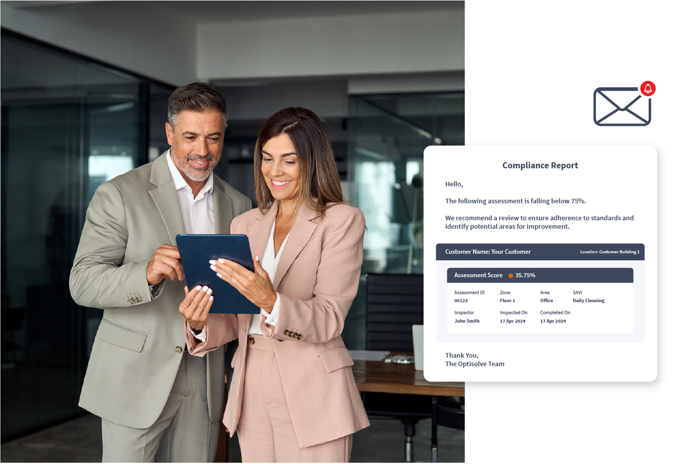 Optisolve’s automated inspection tools enable users to conduct thorough assessments of cleaning tasks with ease. With customizable digital checklists and real-time data capture, you can ensure that every cleaning task meets the highest quality standards.